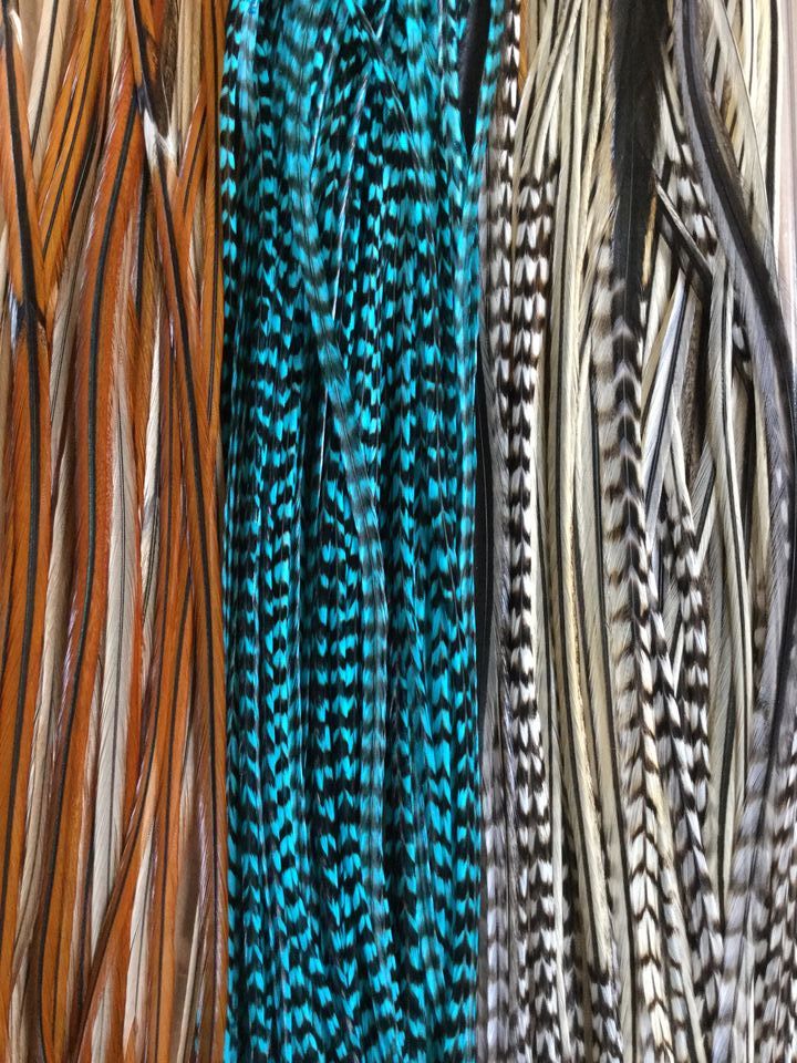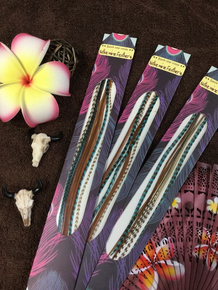ノーマルフェザーは、細い羽根が3本束になっていて髪の毛とも良く馴染み、何処にでもつけて頂けます。